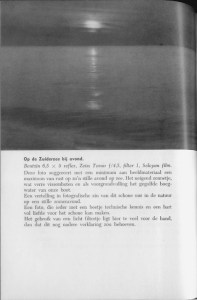 De auteur, A.P.W. van Dalsum dus, brak zijn lans voor de landschapsfotografie in de oorlogsjaren, toen hij voorzitter was van de Nederlandse Amateurfotografen Vereniging. Van D. houdt van ferme uitspraken (‘Een goede foto van een landschap ziet men zelden’, ‘…bedenk dan wel, dat een wolk geen klodder wit is’), en God wordt geregeld in dankbaarheid genoemd.